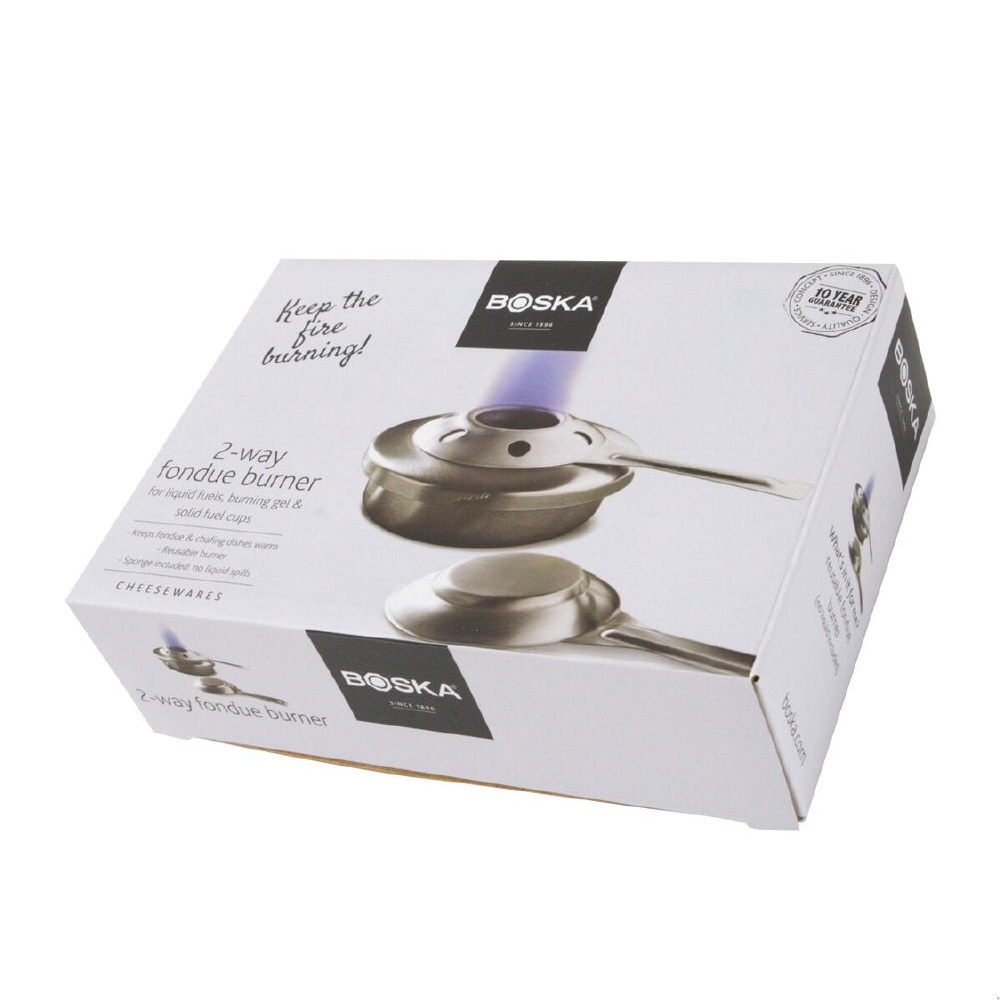 ボスカのユニバーサルフォンデュバーナーを使用すれば、チーズフォンデュやチョコレートフォンデュが常に適切な温度に保たれることが保証されます。フォンデュバーナー用の燃料(含まれていません)は液体またはゲル燃料を使用できます。