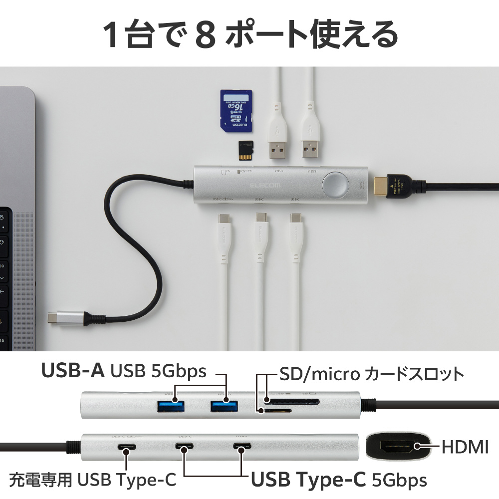 ■USB Type-Cポートから最大8つのポートに接続できるドッキングステーション