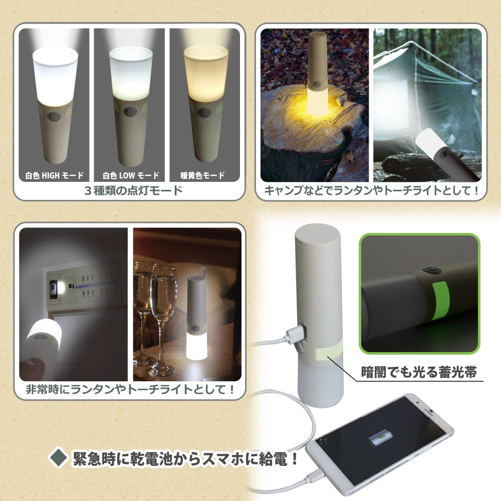 ● 3種類の点灯モード(白色HIGH/白色LOW/暖黄色)