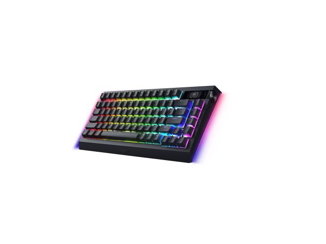 Razer HyperSpeed と HyperPolling による真の 4K Hz ワイヤレスを搭載したのキーボード、Razer BlackWidow V4 Pro 75% で完全な没入感を体験。Bluetooth や Razer コマンドダイヤルを搭載したホットスワップ可能な設計で、OLED ディスプレイで PC のメトリクスのモニタリングやカスタム GIF の表示などが可能で、制約のない理想のキーボードを実現しています。