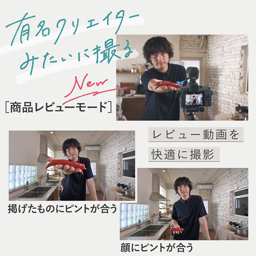 ※動画モードでのみ有効です。商品レビュー撮影に適した状態に一括設定されるため、フォーカスモードやAFエリアモードなどの設定は変更できません。