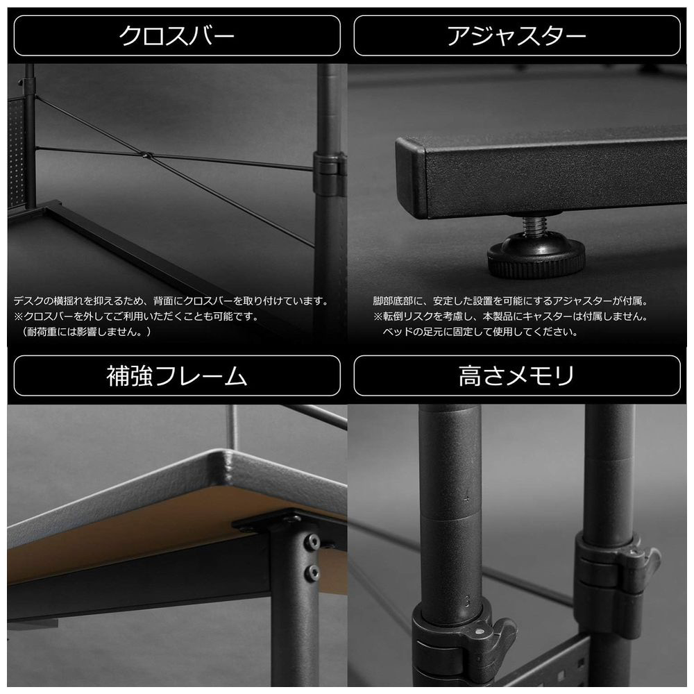 ベッドデスク [W1200xD500xH635〜900mm] ブラック BCBHD-1200BD-BK