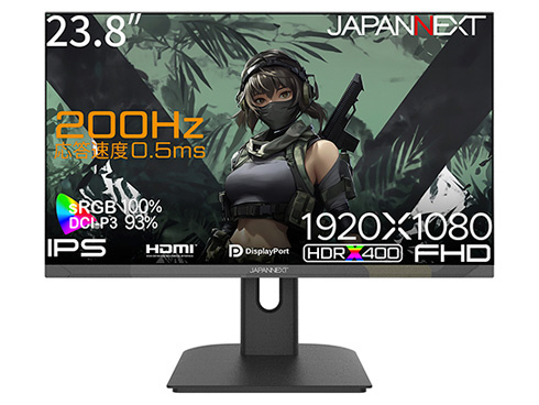 23.8インチのIPSパネルを搭載し、0.5ms(MPRT)の高速応答速度と200Hzの高速リフレッシュレートに対応した、フルHD(1920x1080)解像度のゲーミングモニターです。