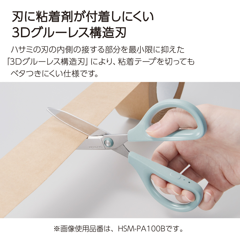 ●刃の接する面積を最小限に抑えた「3Dグルーレス構造」により、粘着テープのりがつきにくく、べたつきません。