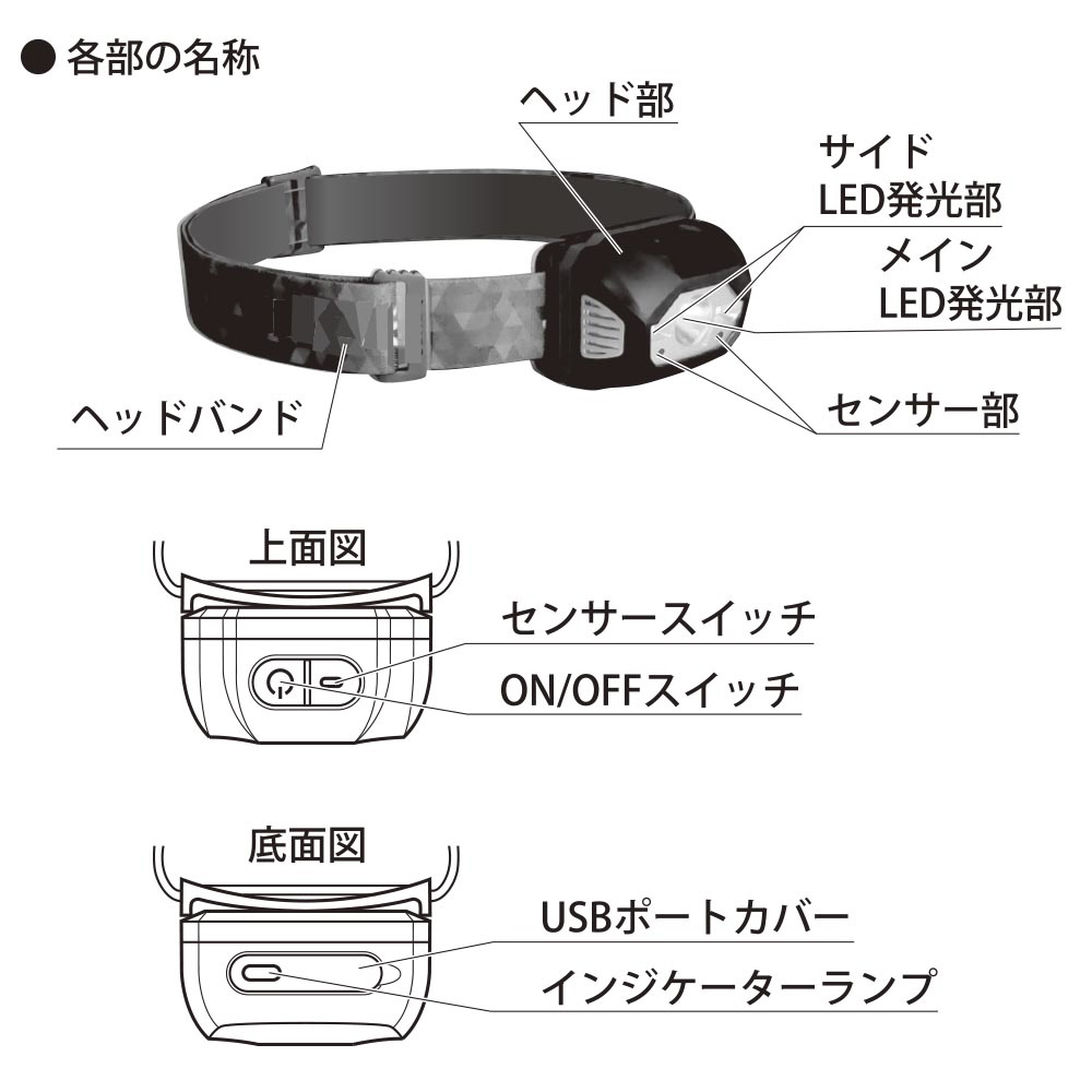 USB充電式LEDヘッドライト 440ルーメン LC-MUS440-K [LED /充電式 /防水対応]