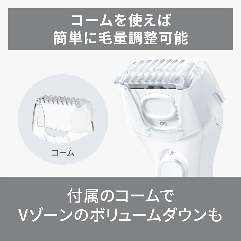 ・付属のビキニコームでアンダーヘアーのボリュームダウン、毛髪を調整できます。