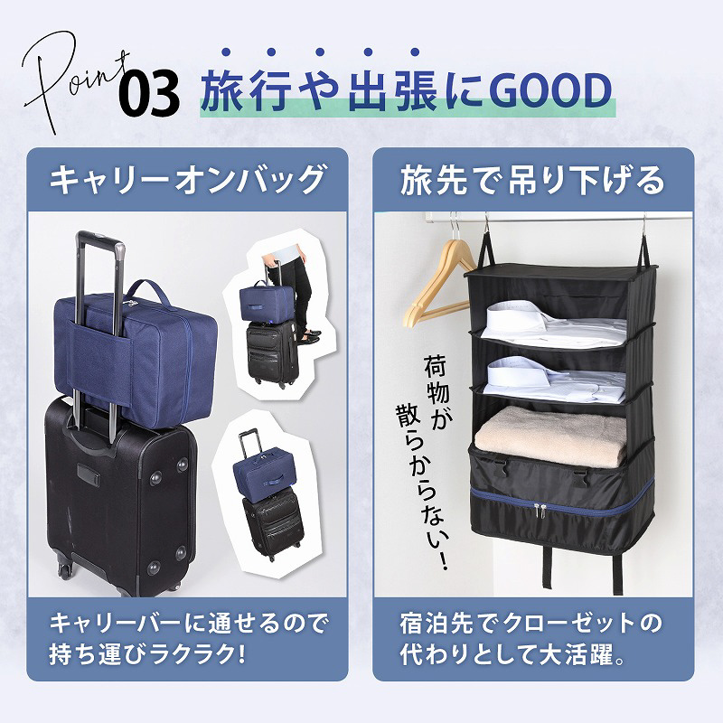 かさばる洋服や下着類、タオル、小物類などをまとめてスッキリ収納できる。