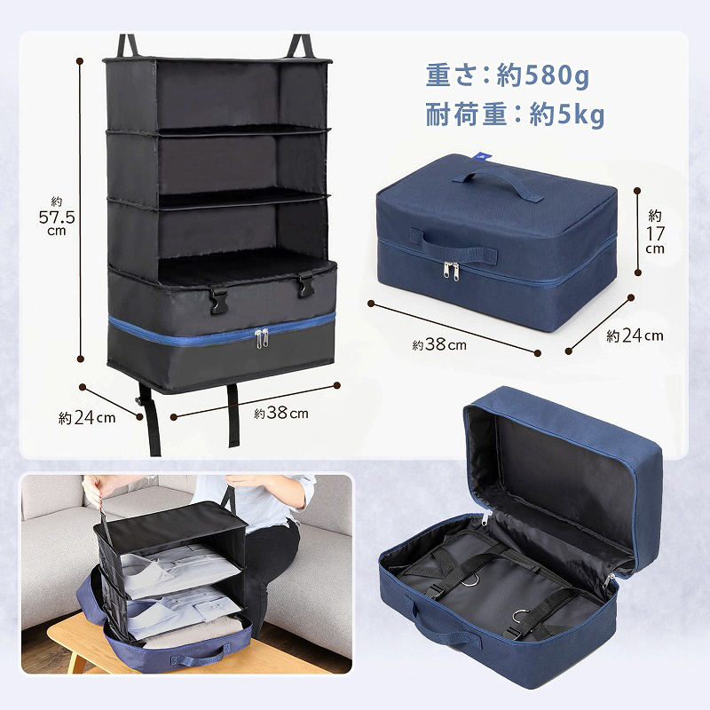サイズ/約幅38×奥行17×高さ24cm(折りたたみ時)、カラー/ネイビー×ブラック、内容/1個、材質/ポリエステル・鉄・プラスチック・ポリプロピレン・厚紙