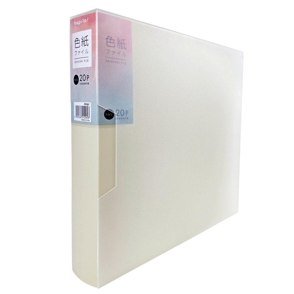 大色紙を20枚収納!大容量で自立するケース付きファイル<BR>(半角)約48mmの背幅でしっかり自立<BR>(半角)ホコリから守るケース付き<BR>(半角)広告紙は裏返して見出しとして使えます<BR>(半角)適合サイズ:大色紙(約273x242mm 厚さ約2mm)<BR>(半角)仕様:20ポケット/上入れタイプ
