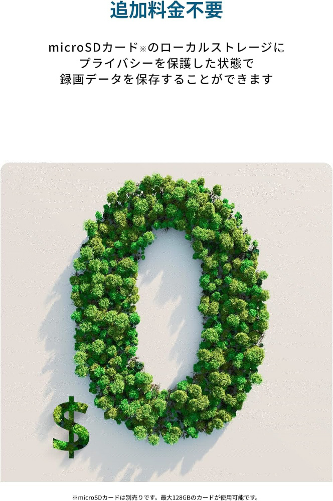 サイズ:?7.33 x 7.12 x 10.83 cm、重さ:268 g、解像度:4K、画角:125°、フレームレート:15fps、スマートアシスタント互換性:HomeKit、Alexa、Googleアシスタント、記録方法:24時間、通話機能:双方向通話