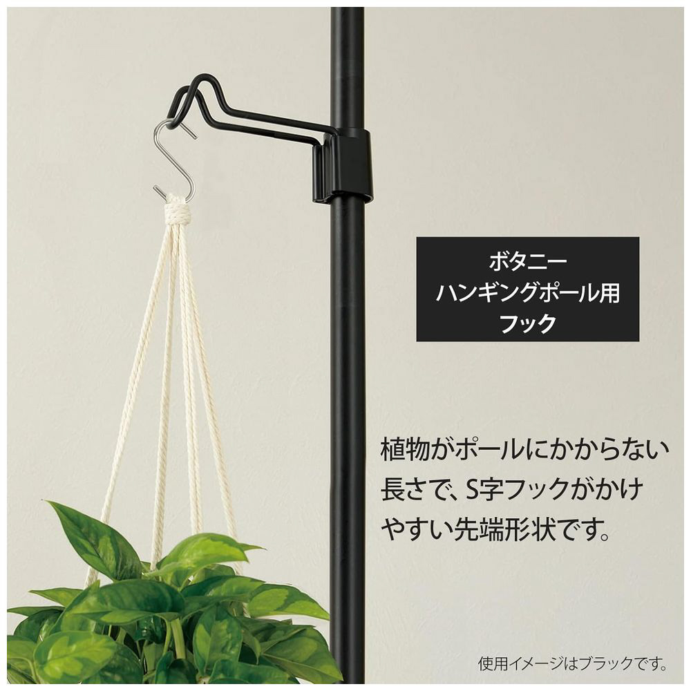 植物がポールに当たらない長さで、S字フックも掛けやすい形状。