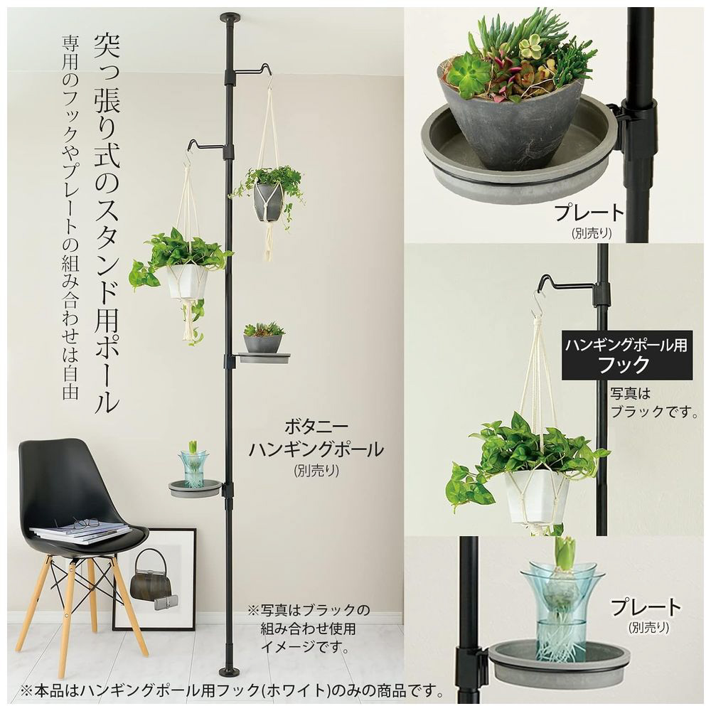 工具不要で簡単設置、360度回転可能なハンギングポール用フック。日当たり調整もラクラク。省スペースで植物を美しく飾れます。
