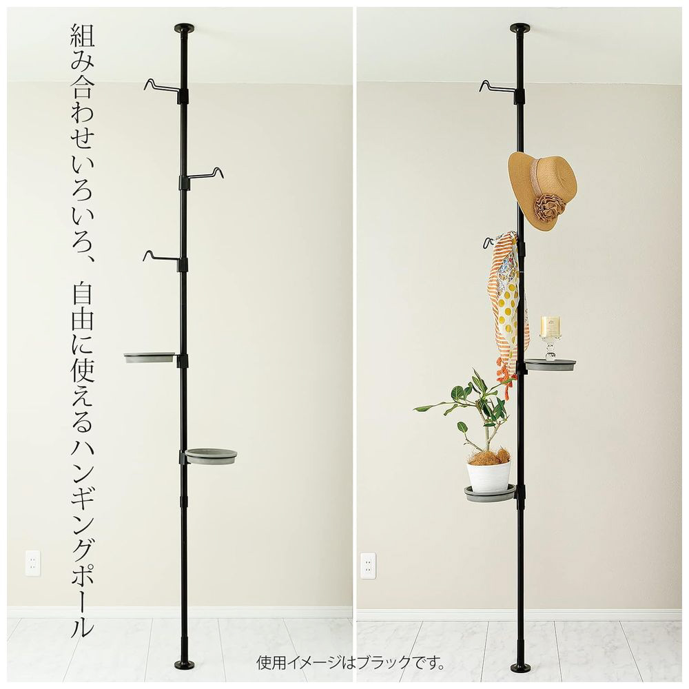 工具不要でポールの上下左右に簡単に移動できるハンギングポール用フックです。