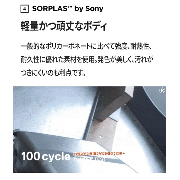 SONYが開発したSORPLASは、リサイクル素材でありながら頑丈で変形しにくく、優れた発色と高品質な仕上がりが叶う素材です。これまでにリサイクル率が30%だったものを99%にまで引き上げた革新的な素材でもあります。