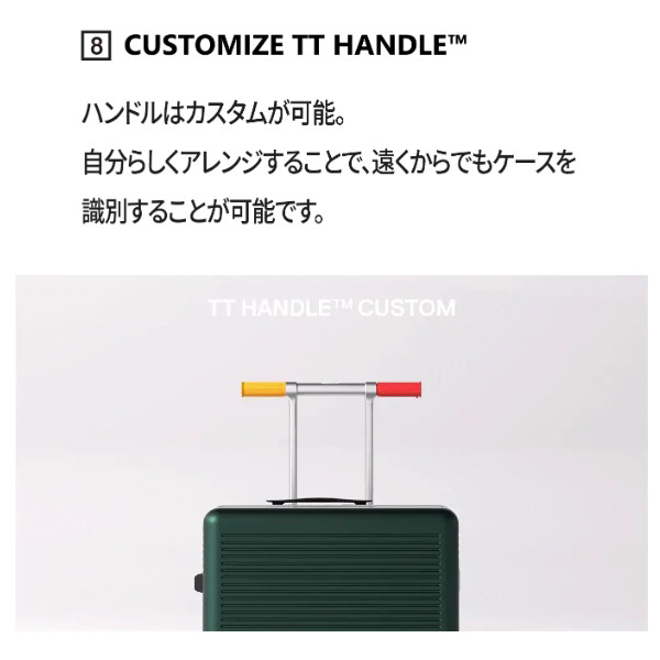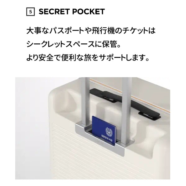 パスポートや財布など、すぐに取り出したいアイテムを収納するためのポケットをTTハンドルの下に搭載。