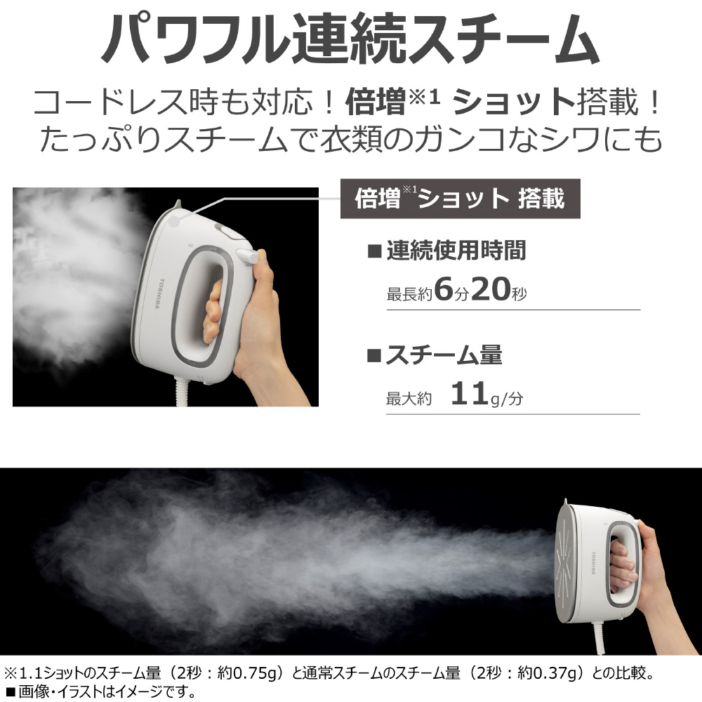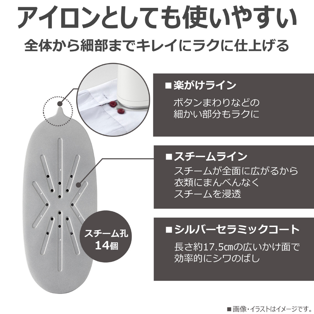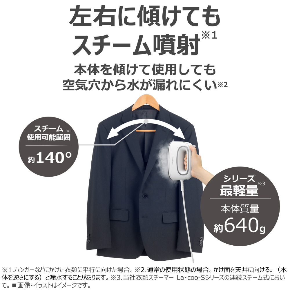 連続スチームでサッとシワのばし。軽量&コンパクトなコード付き衣類スチーマー。