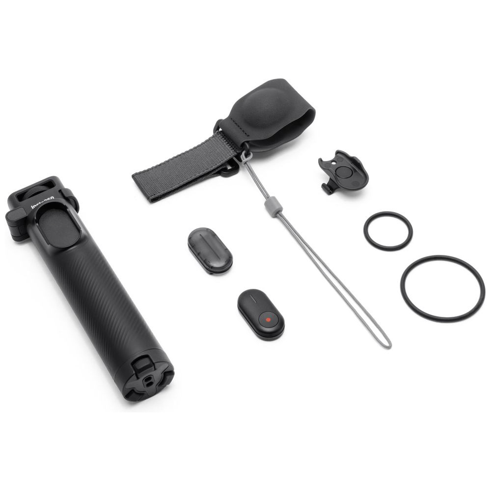 製品内容:折りたたみ式内蔵三脚付き自撮り棒(1/4インチマウント)、収納カバー、レンズキャップストラップ、ミニリモコン、ミニリモコンベース、ミニリモコンストラップ×2
