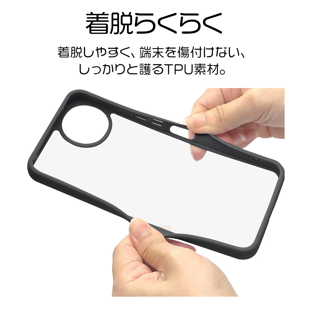 ●側面は弾力と柔軟性を兼ね備えたTPU素材で端末を衝撃から保護し、着脱も簡単です。