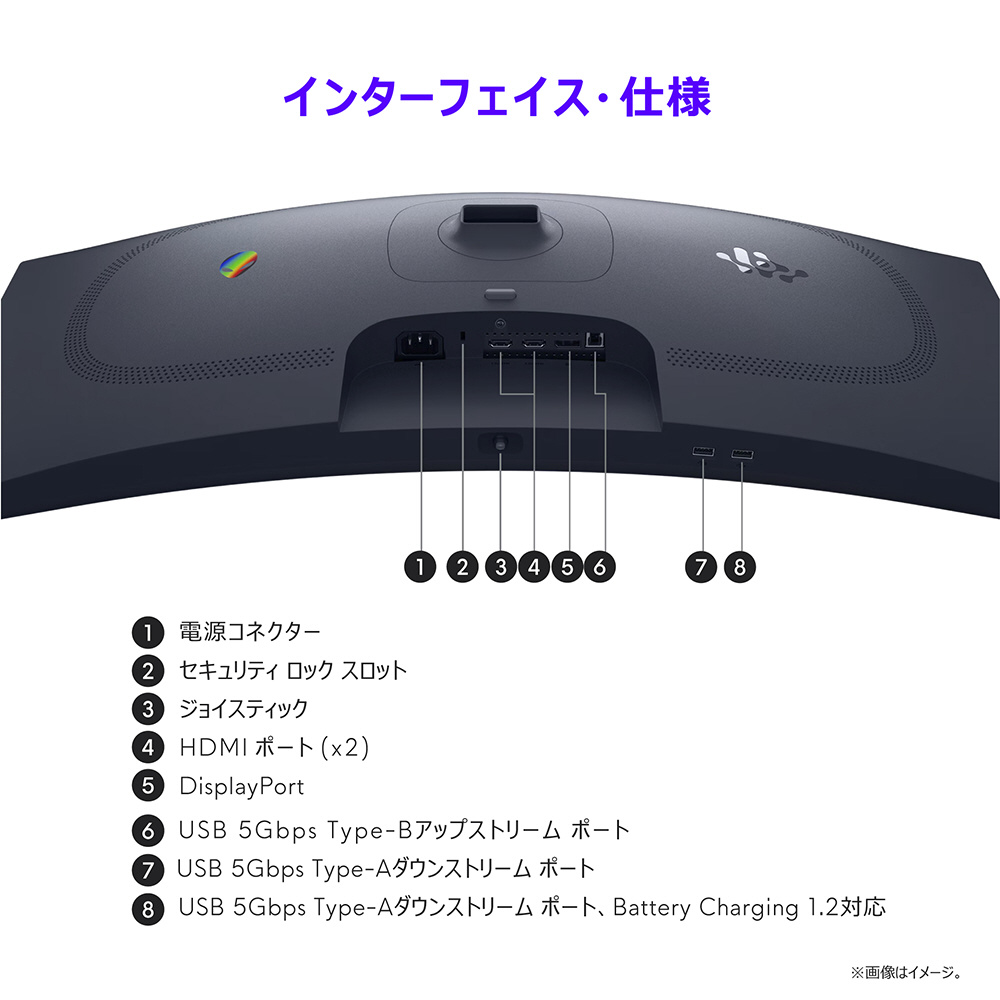 付属品 電源ケーブル、DPケーブル(1.8m)、HDMI2.1ケーブル(1.8m)、USBケーブル(1.8m)