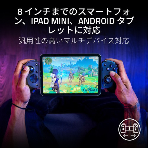 スマートフォンまたはより大きなスケールでゲームプレイ。iPad mini や 8 インチまでの Android タブレットにフィットする革新的な伸縮式ブリッジで、最高の AAA ゲームにふさわしい視聴体験を。