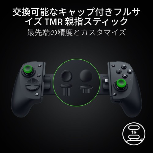 フルサイズのモバイルコントローラーで、モバイルゲームを最大スケールで体験し、完全にコントロール。スマートフォン、ミニタブレット、PC 向けに作られ、フルサイズの TMR 親指スティック、デュアル マウスクリックバックボタンとクローグリップバンパー、没入感のある Sensa HD ハプティクスを備え、プロレベルのコンソールコントローラーのエルゴノミクスとパフォーマンスを実現。