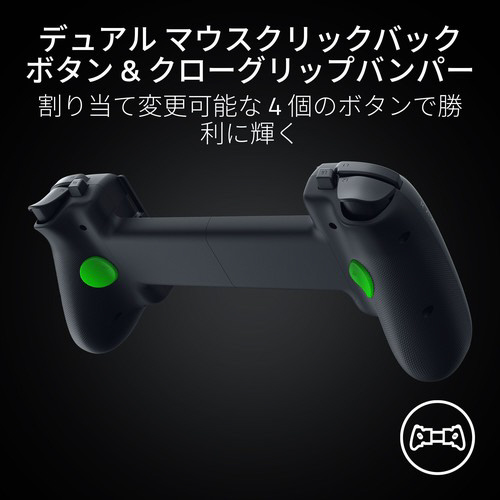 人間工学に基づいたコントローラーのハンドルに内蔵された 2 つのバックボタンと、さらにコントロール性を高める 2 つのクローグリップバンパーで、Razer のトップクラスのゲーミングマウス並みの応答性に優れた操作が楽しめます。