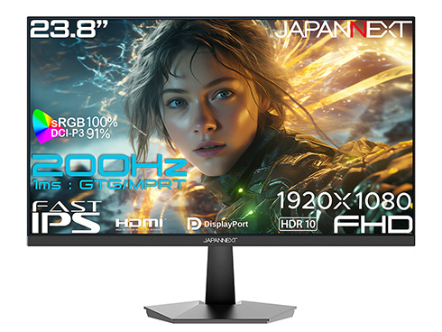 「23.8インチ FAST IPSパネル搭載 200Hz/1ms(GTG:OD時/MPRT)対応 フルHD(1920x1080)解像度 ゲーミングモニター HDMI DP HDR sRGB:100% DCI-P3:91% 【2年保証】」