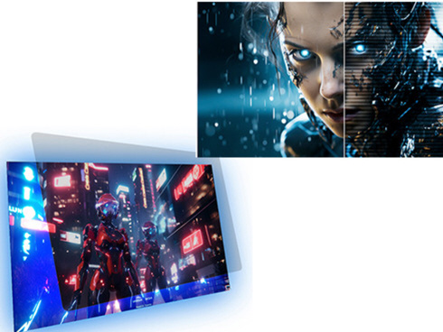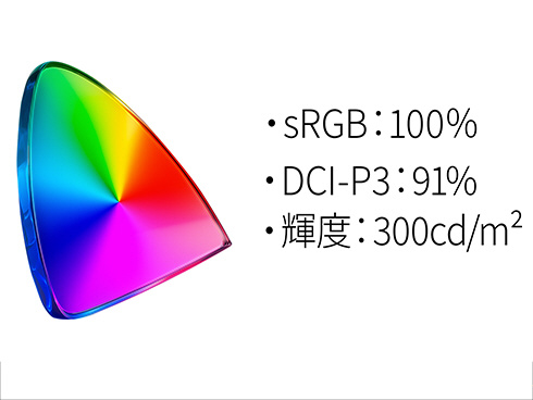 ■最大輝度300cd/m2、sRGB:100%、DCI-P3:91%の広色域に対応した液晶パネルは、コンテンツを色鮮やかに映し出します。