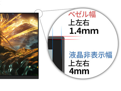 ■AdaptiveSync(FreeSync)に対応。画面のリフレッシュレートとコンテンツのフレームレートのズレから生じるティアリングを防ぎ、滑らかで美しい映像を実現します。ブルーライト軽減モードを搭載し、フリッカーフリー設計で、目と身体への負担を軽減します。