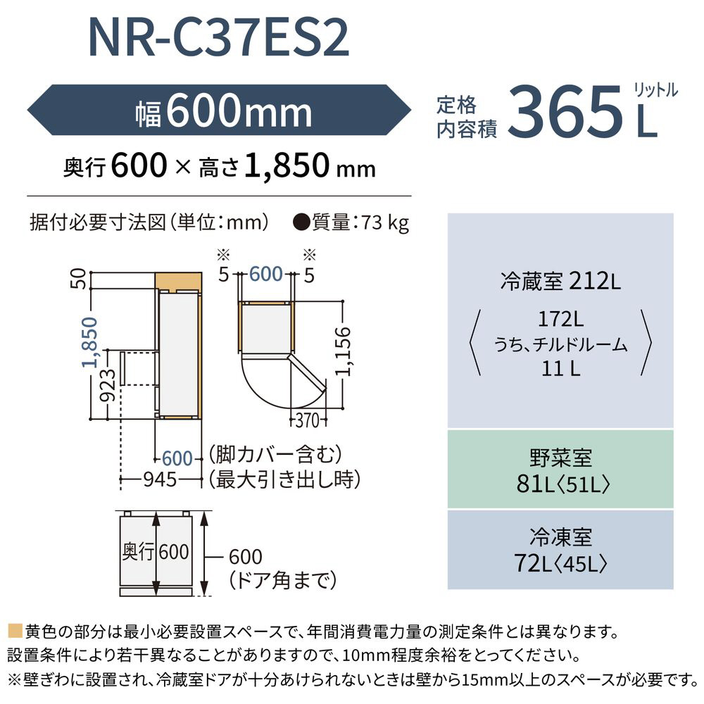 冷蔵庫 ESタイプ マットベージュ NR-C37ES2L-C [幅60cm /365L /3ドア /左開きタイプ /2025年]