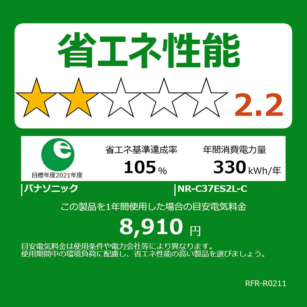 年間消費電力量 330kWh/年 新JIS測定・計算方式(JIS C 9801-3: 2015)