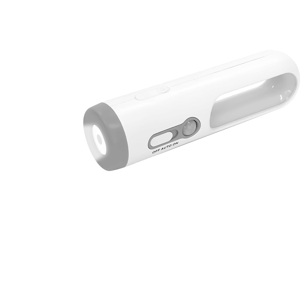 常時点灯モード・人感センサーモード、懐中電灯の3つのモード付ライト。【仕様】300mAhリチウムイオン電池使用。充電時間約2時間。[リングライト]約80lm、[ハンディライト]約100lm[付属品]USBケーブル