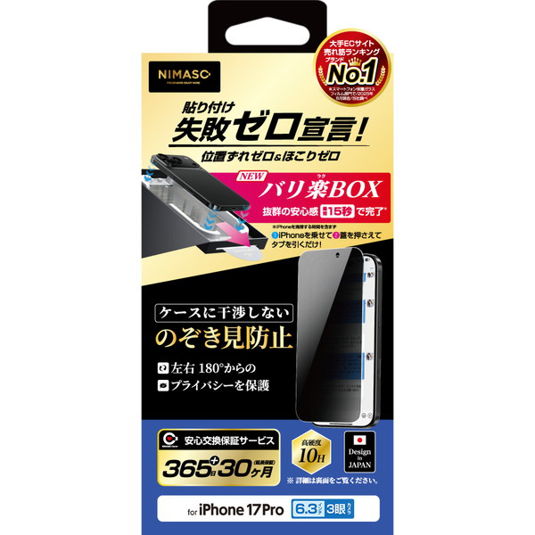 iPhone 17 Pro ガラスフィルム のぞき見防止 バリ楽BOX NI-G1-17CN3