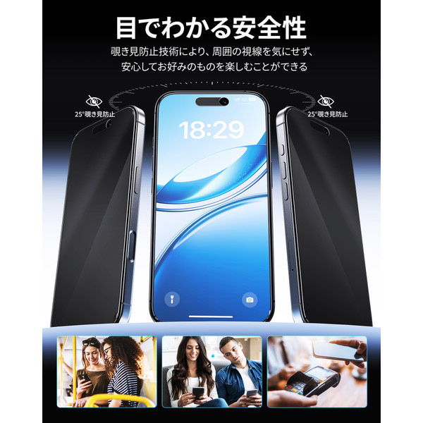 のぞき見防止加工によりプライバシーを守ります。