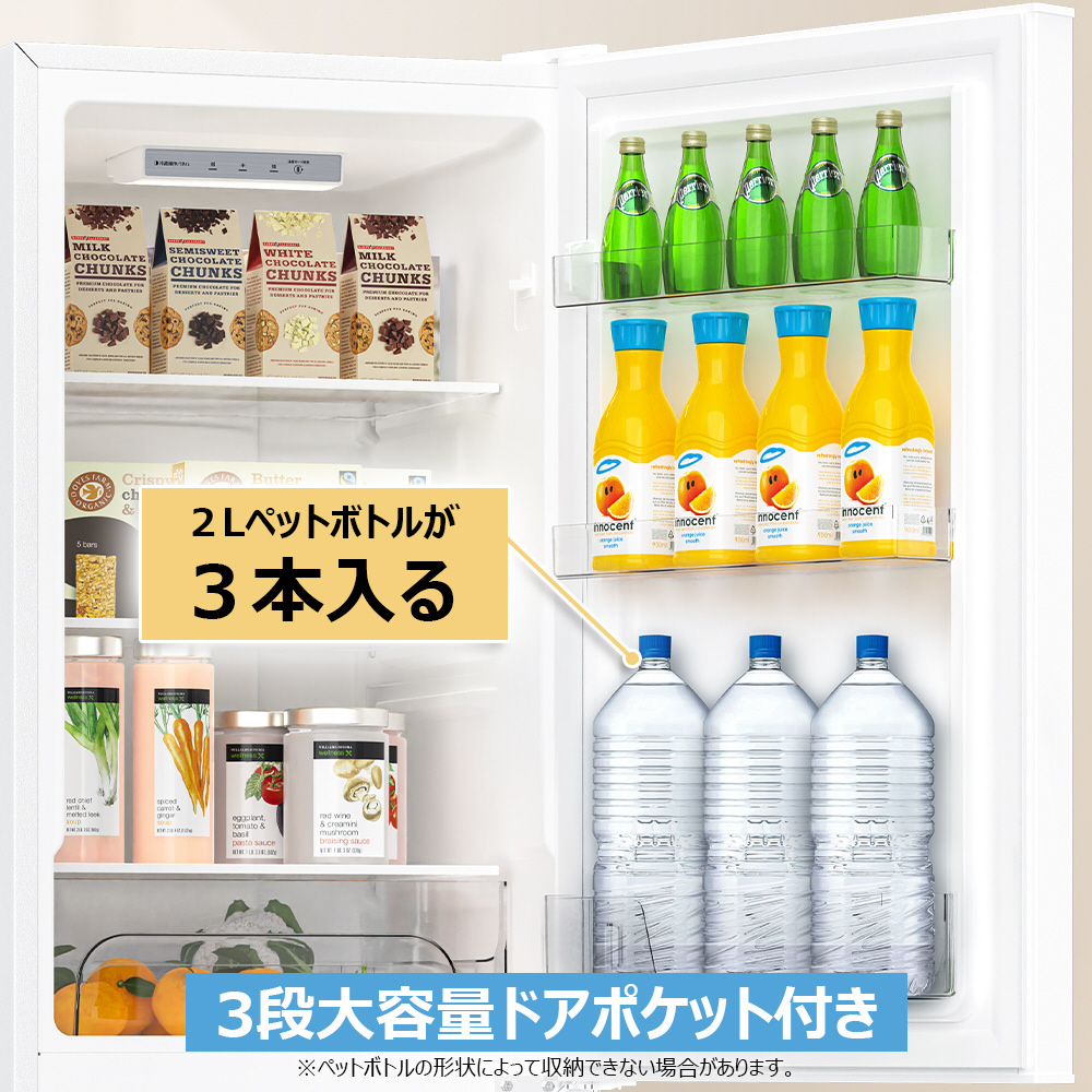 ■2Lペットボトルが3本すっきり入る大容量ドアポケット