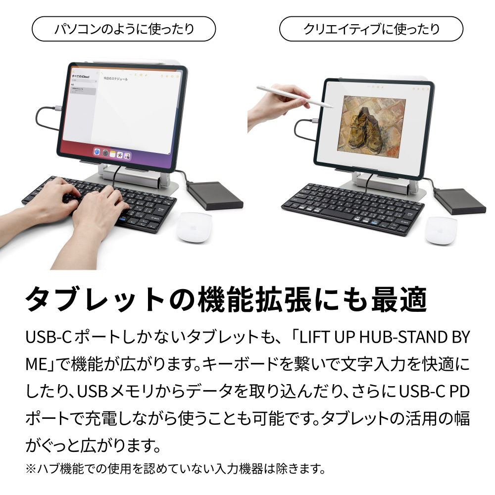 USB-Cポートしかないタブレットも、「LIFT UP HUB-STAND BY ME」で機能が広がります。