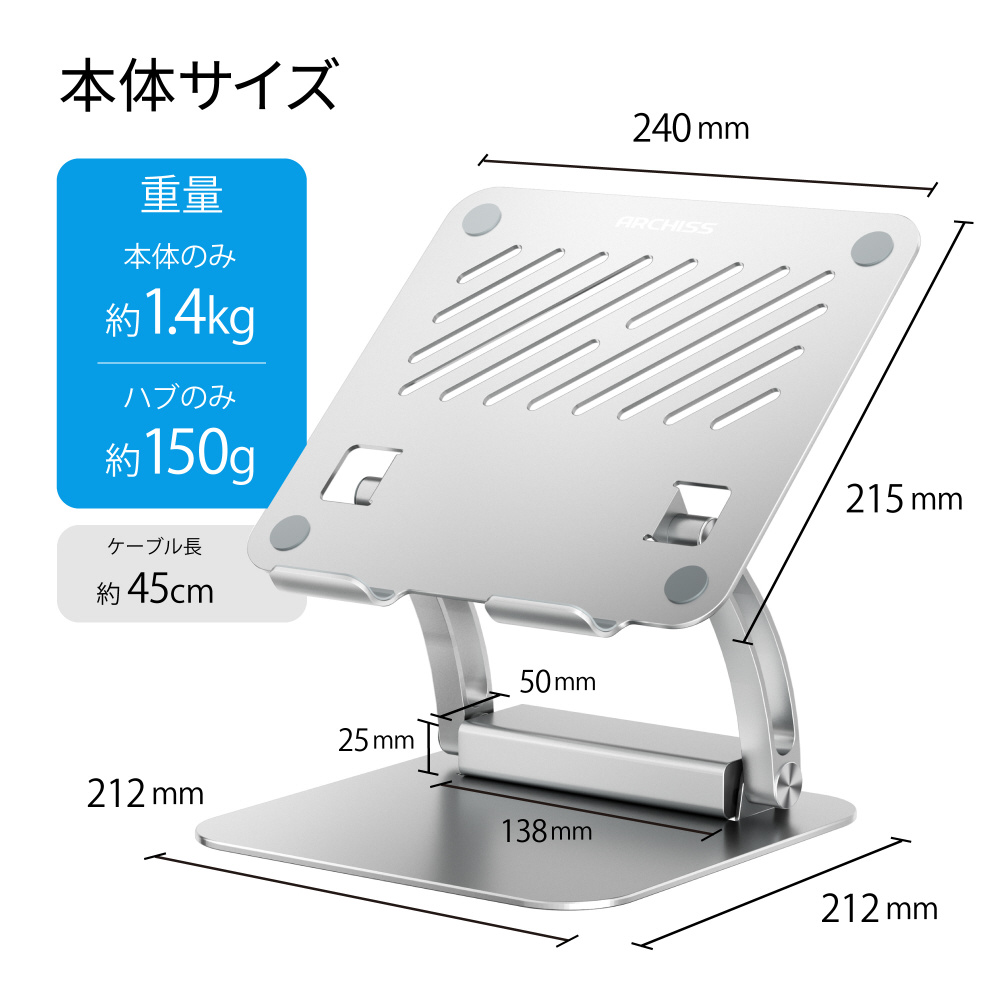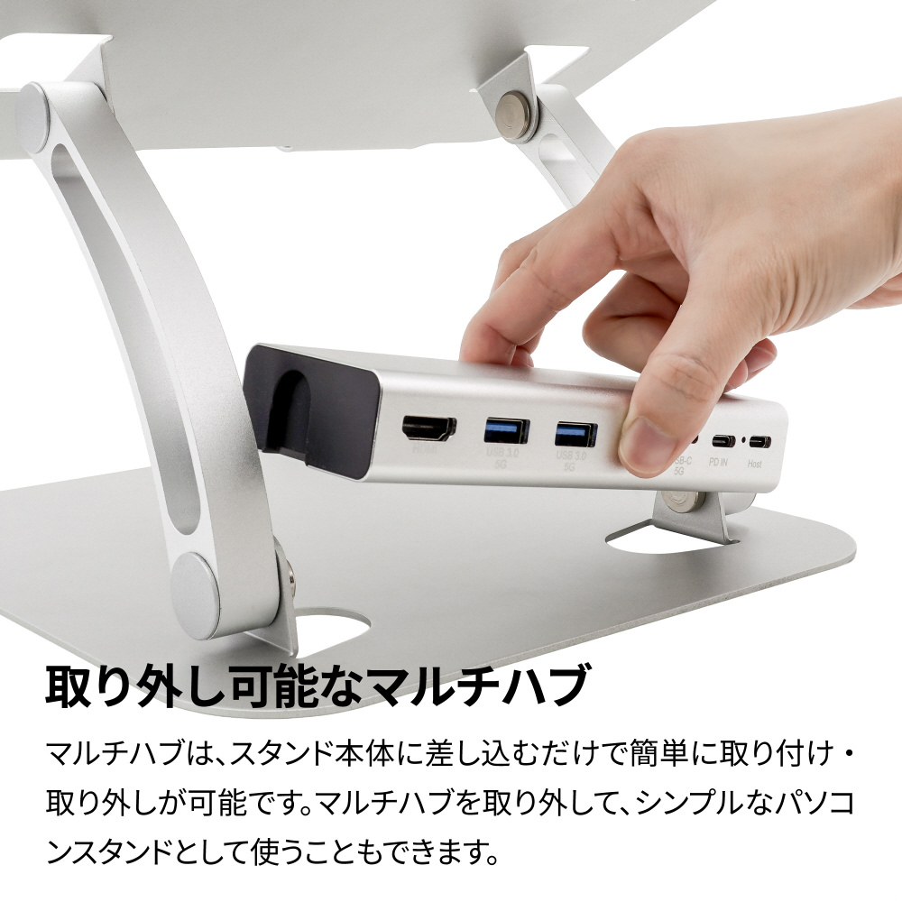マルチハブを取り外して、シンプルなパソコンスタンドとして使うこともできます。