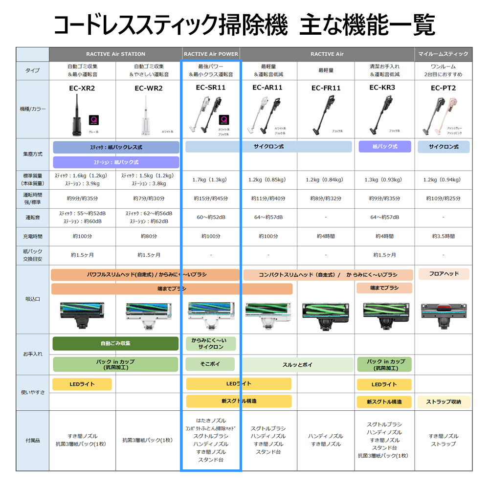 コードレススティック掃除機 RACTIVE Air POWER EC-SR11-W [サイクロン式 /コードレス /水拭き非対応]