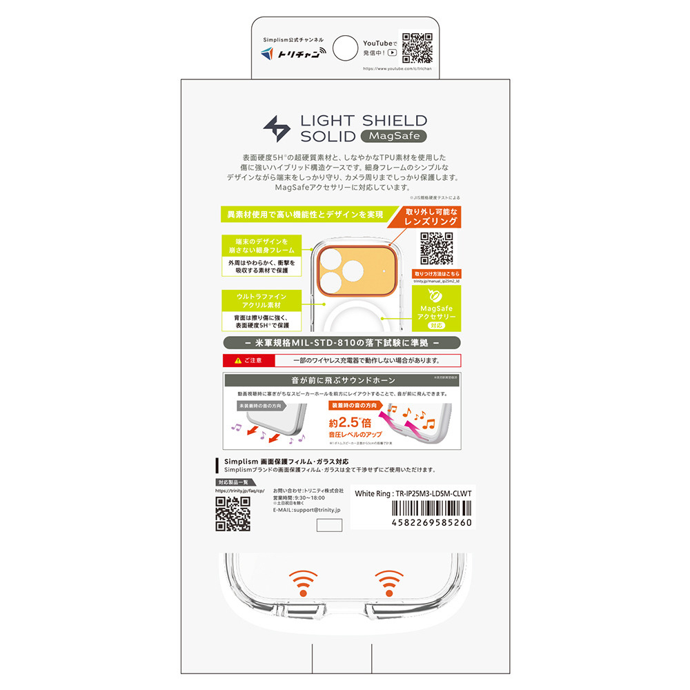 iPhone 17 Pro ケース [LIGHT SHIELD Solid] MagSafe対応 超精密設計 衝撃吸収 ハイブリッドクリア ケース ホワイトリング クリア TR-IP25M3-LDSM-CLWT
