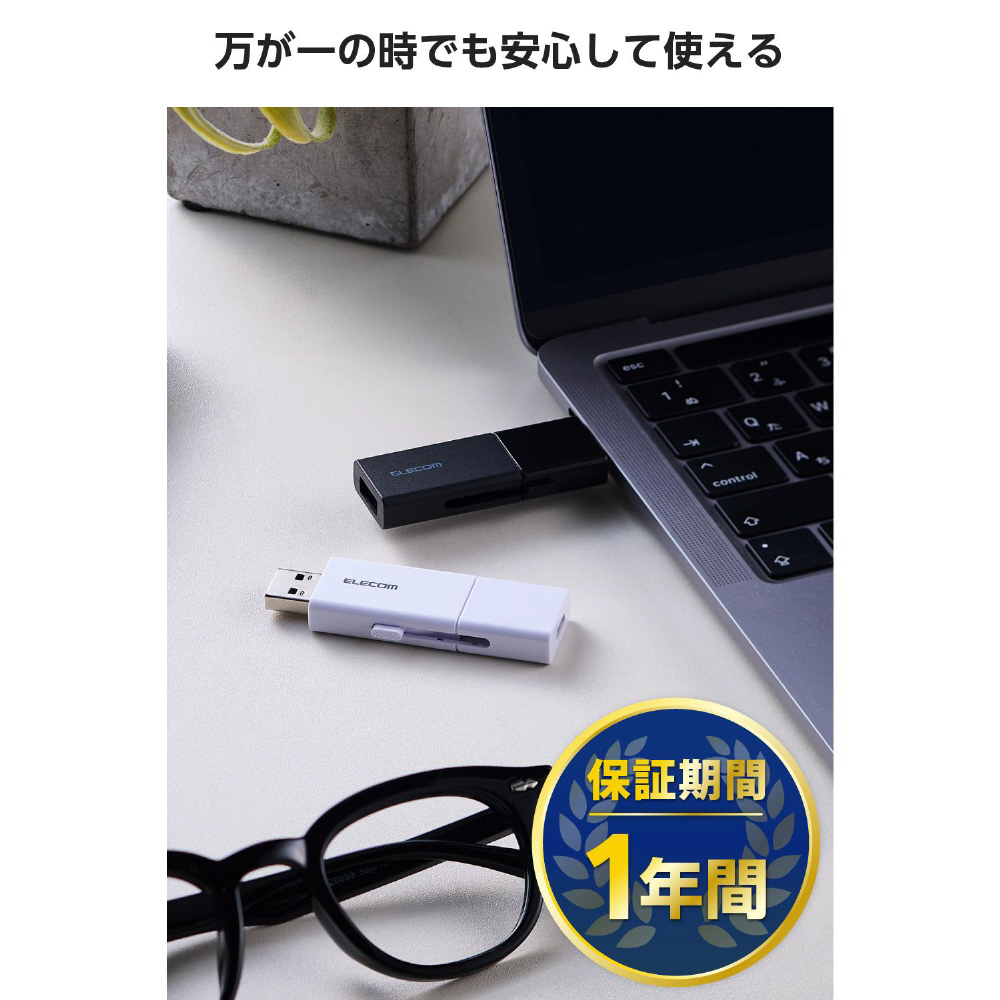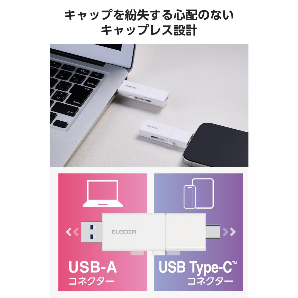 USBメモリ (iPadOS/iOS/Mac/Windows11対応) ホワイト MF-WSAU3128GWH [128GB /USB TypeA+USB TypeC /USB3.2 /スライド式]