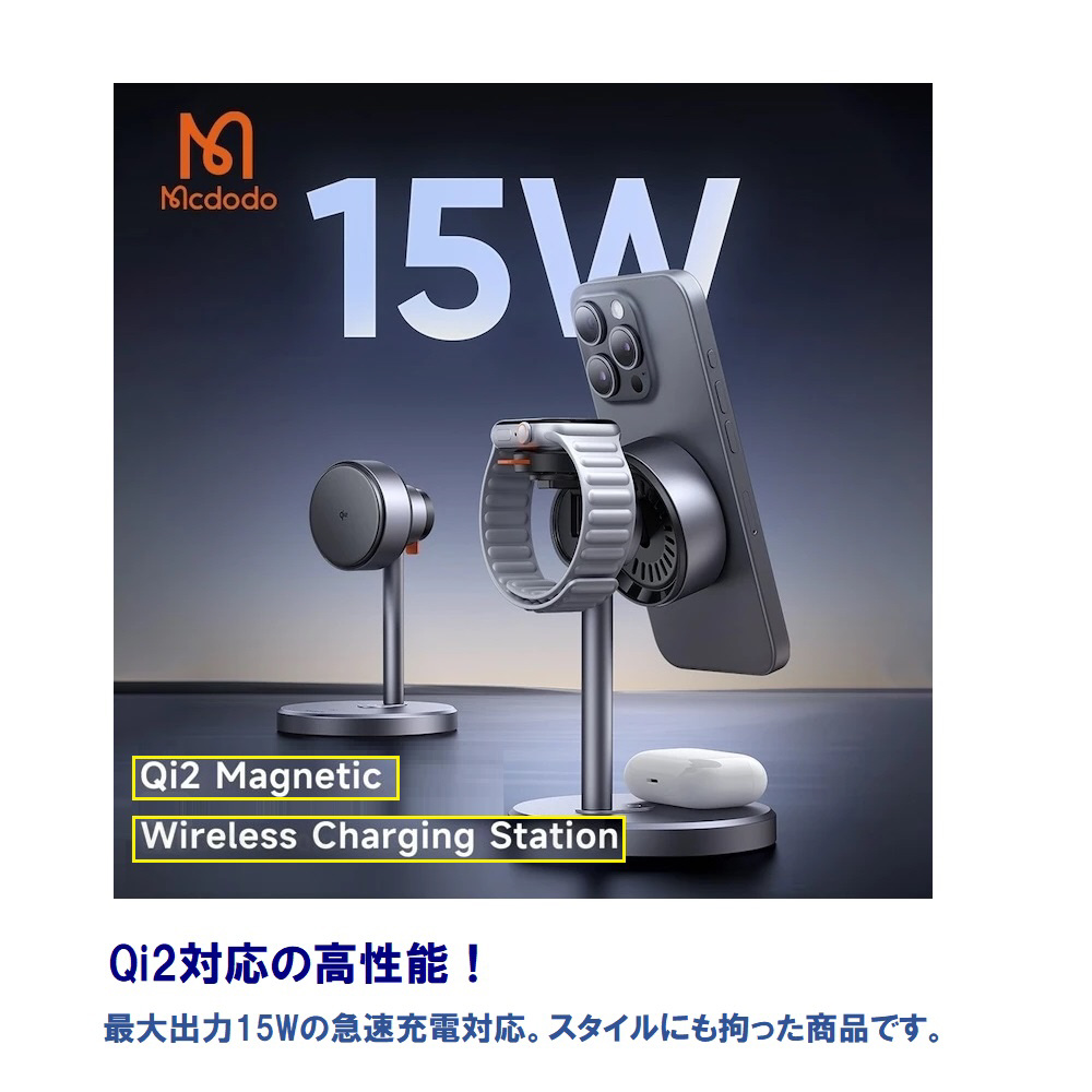 Mcdodo Qi2 3in1 Appplewatch対応 ワイヤレス充電スタンド CH-246
