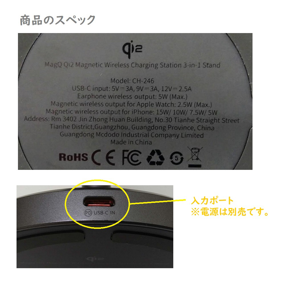 出力:Applewatch用: 2.5w(最大)  IPhone:15w/10w/7.5w/5.0w(最大) イヤホン用: 5.0w(最大)