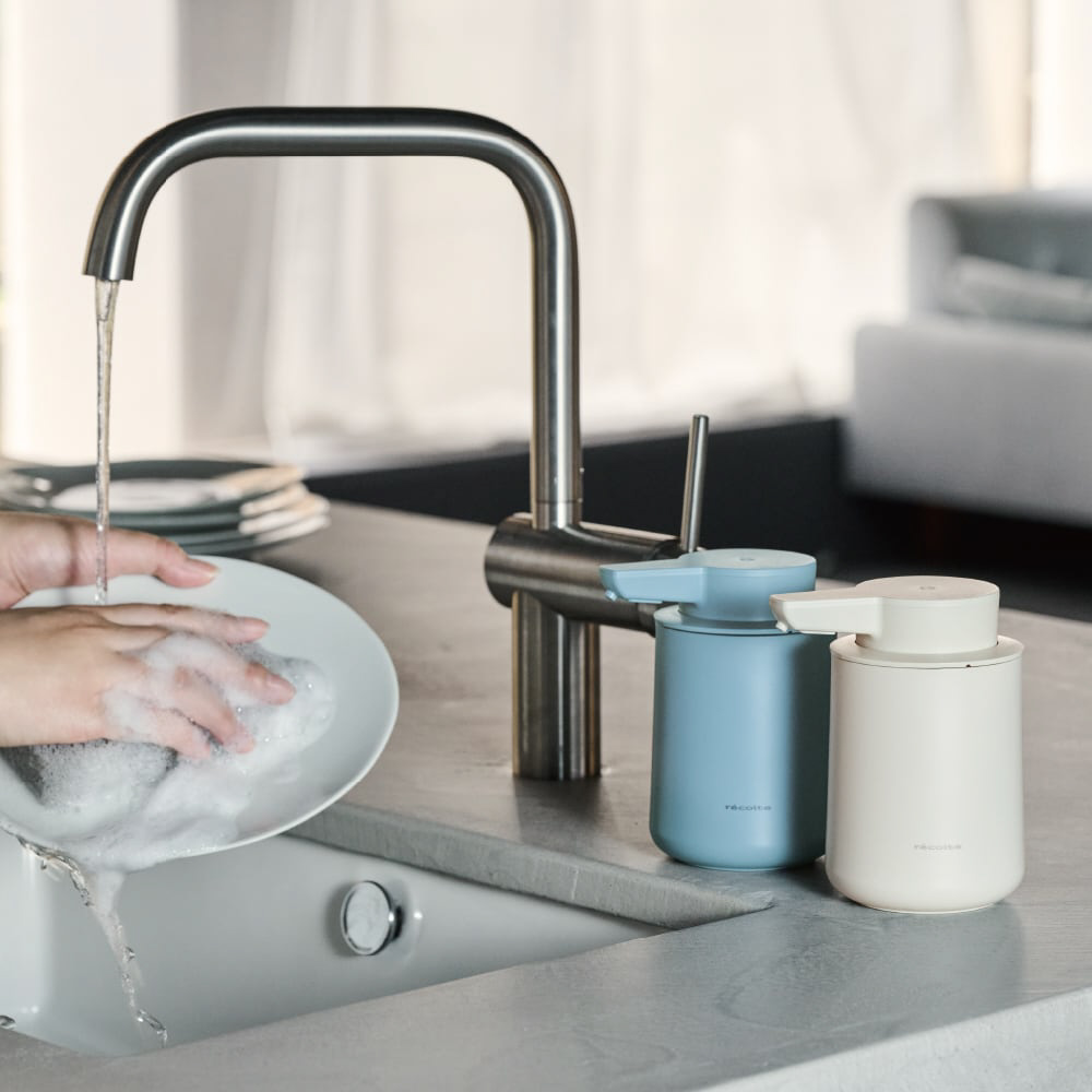 手をふれずに使えるから洗い物も簡単。手がふさがりがちなキッチンで使うと便利です。