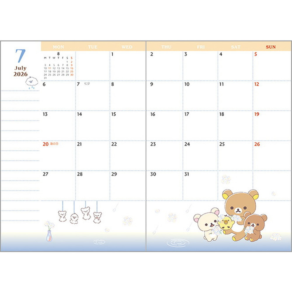 糸とじ手帳ワイド リラックマ ME67411 [マンスリー /月曜日始まり]