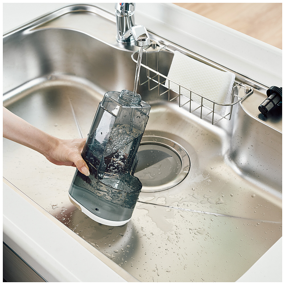 ホース洗浄用ノズルや取り外して水で丸洗いできるパーツで、清潔にお手入れできる。