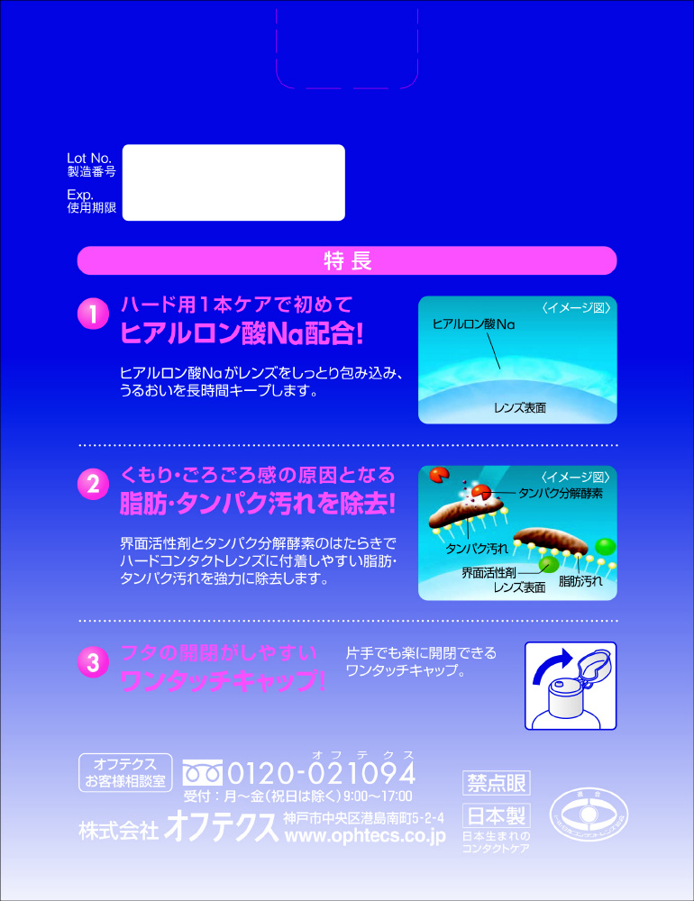 O2・ハードレンズ用1本タイプではじめてヒアルロン酸配合!