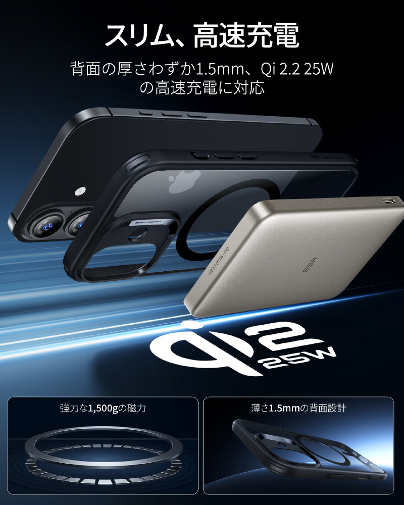 仕様3 スリムな背面でQi2.2 25Wの高速充電にも対応