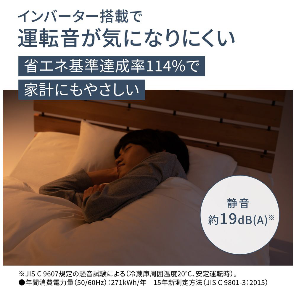 ・運転音が気になりにくい、約19dB(A)の静音(※1)。2021年省エネ基準達成率 114%(※2)。