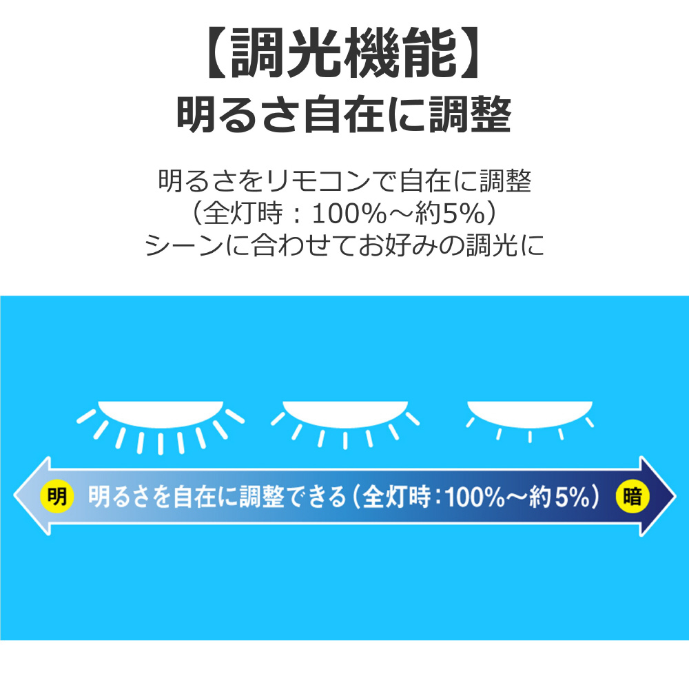 【調光】連続調光(100%?約5%) 【調色】電球色 - 昼光色(2700-6500K)【常夜灯】LED常夜灯6段階調光