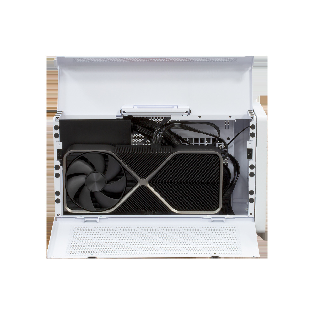 850WのATX 3.1電源ユニットを内蔵しており、最大600Wの電力をグラフィックカードに供給します。また、USB Power Delivery(PD)に対応しており、グラフィックカードへの給電と同時にノートPCへの給電も可能です。